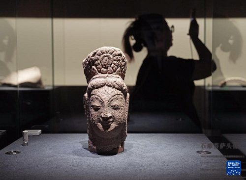 10月9日在特展現(xiàn)場拍攝的云岡文物。(新華社記者 劉穎 攝)