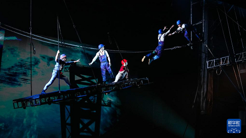 10月9日,演員在表演雜技劇《脊梁》。(新華社記者 陶亮 攝)