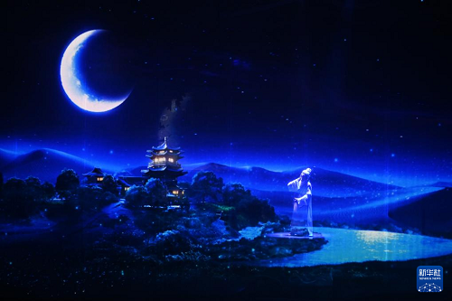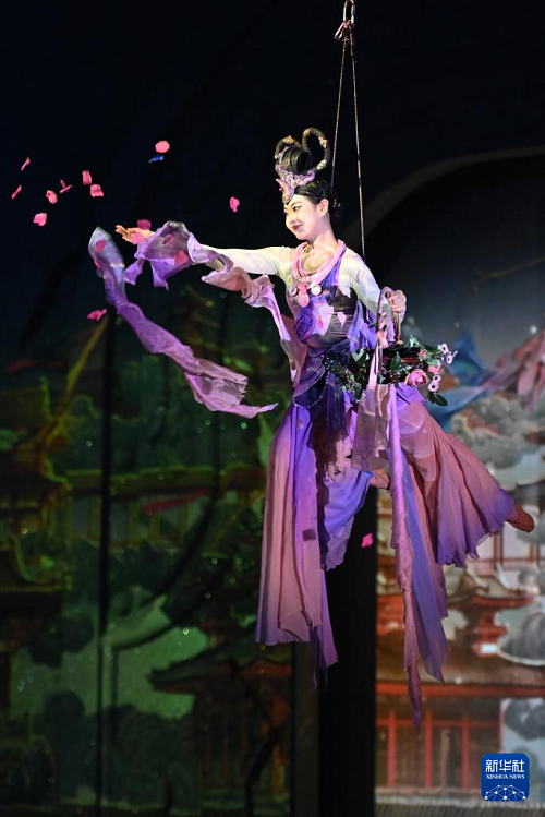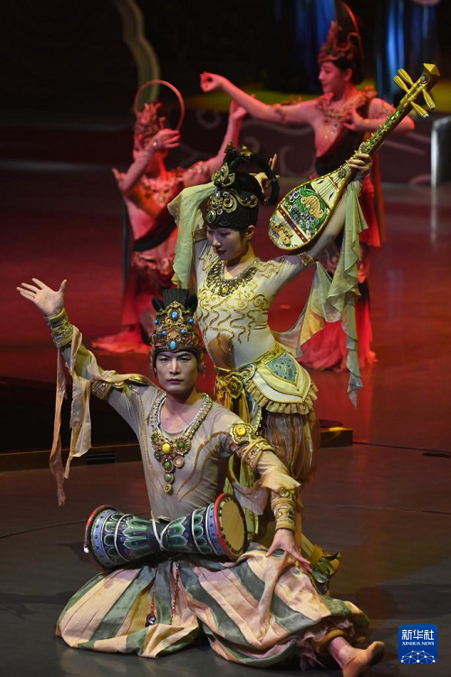 10月12日,演員在《樂(lè)動(dòng)敦煌》中表演。(新華社記者 范培珅 攝)