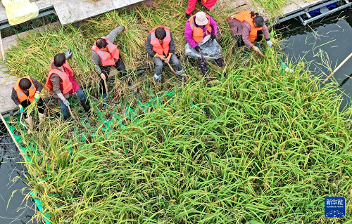 | 安徽淮南:漂浮式水稻獲豐收 |