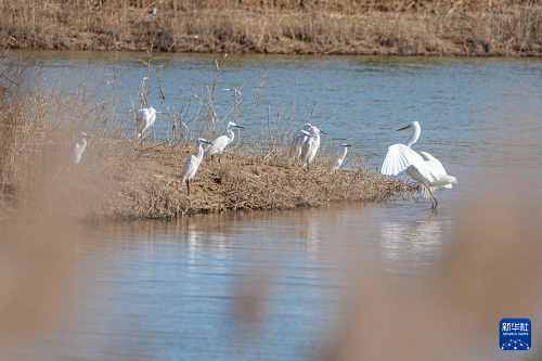 11月13日,在黃河三角洲國(guó)家級(jí)自然保護(hù)區(qū),白鷺在濕地休憩。(新華社記者 朱崢 攝)