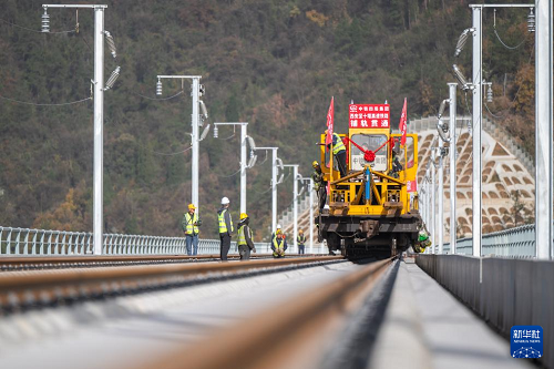 11月27日,在湖北十堰神定河特大橋上,西安至十堰高速鐵路(簡稱“西十高鐵”)全線最后一對長鋼軌鋪設落地,標志著西十高鐵全線鋪軌工程順利完工,為后續(xù)聯(lián)調(diào)聯(lián)試奠定基礎(chǔ)。