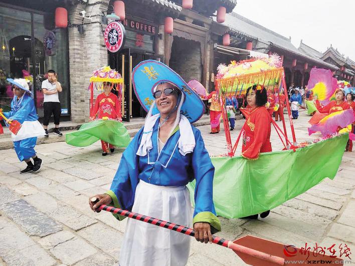 漫步在忻州古城街頭,一個個具有濃厚地方文化特色的表演節(jié)目,如五臺秧歌、巾幗鼓舞、五臺山佛樂、旱船表演等輪番上演,讓游忻州古城的市民和外地游客深深領(lǐng)略到了五臺的風(fēng)土人情,近距離感受到了五臺縣非物質(zhì)文化遺產(chǎn)的魅力和特色文化旅游資源的風(fēng)采。