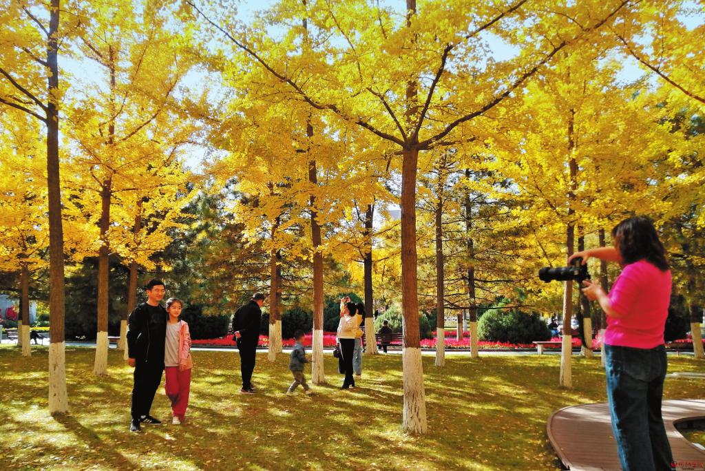 葉落知秋,霜落知寒,但屬于銀杏的時節(jié)才剛剛開始。忻州城區(qū)人民公園絢爛金黃的銀杏把秋日氣息渲染到了極致,使原本蕭瑟的秋季充滿融融暖意。滿樹的金黃,一片片、一簇簇,層疊排開、錯落有致,一陣微風(fēng)吹過,扇形葉子飄灑而下,如漫天飛舞的金色蝴蝶,在空中翻轉(zhuǎn),落成一地金黃,吸引無數(shù)游人打卡拍照、流連忘返。(本報記者 李濤 攝