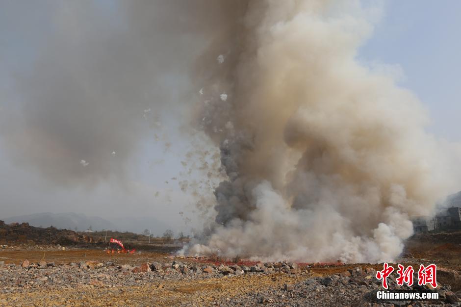 近日,重慶酉陽集中銷毀2097件假冒偽劣煙花爆竹產品,價值30多萬元。據介紹,這些產品由煙花爆竹專項檢查查獲,種類涵蓋各類鞭炮、擦炮、煙花和一些裝藥量較大的鞭炮,如不及時銷毀,一旦流入市場將對市民的生命財產安全構成重大威脅。因數量較大,集中點燃后,銷毀現(xiàn)場上方形成了高達幾十米的白色煙霧。張書浩攝