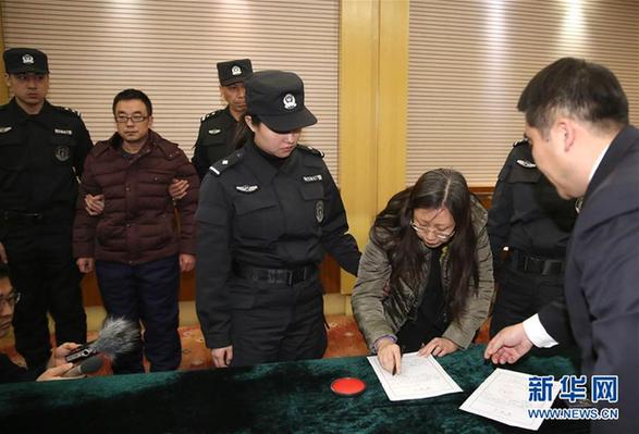 2月6日,在北京首都機(jī)場(chǎng),“百名紅通”嫌犯付耀波(后)、張清曌(前)依次在逮捕證上簽字。當(dāng)日,在中央追逃辦統(tǒng)一部署下,在外交部、公安部及我駐巴巴多斯、格林納達(dá)等駐外使館的大力協(xié)助下,遼寧省追逃辦組織協(xié)調(diào)檢察、公安等部門(mén),成功將遠(yuǎn)逃至加勒比海島國(guó)圣文森特和格林納丁斯的“百名紅通”第39號(hào)嫌犯付耀波、第41號(hào)嫌犯張清曌同時(shí)抓獲歸案。新華社記者殷剛攝