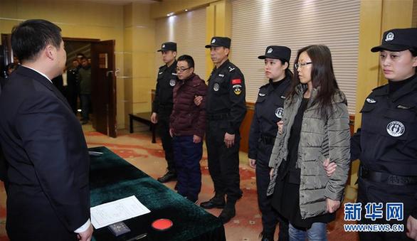 2月6日,在北京首都機(jī)場(chǎng),“百名紅通”嫌犯付耀波(后中)、張清曌(前中)被抓獲歸案。當(dāng)日,在中央追逃辦統(tǒng)一部署下,在外交部、公安部及我駐巴巴多斯、格林納達(dá)等駐外使館的大力協(xié)助下,遼寧省追逃辦組織協(xié)調(diào)檢察、公安等部門(mén),成功將遠(yuǎn)逃至加勒比海島國(guó)圣文森特和格林納丁斯的“百名紅通”第39號(hào)嫌犯付耀波、第41號(hào)嫌犯張清曌同時(shí)抓獲歸案。新華社記者殷剛攝