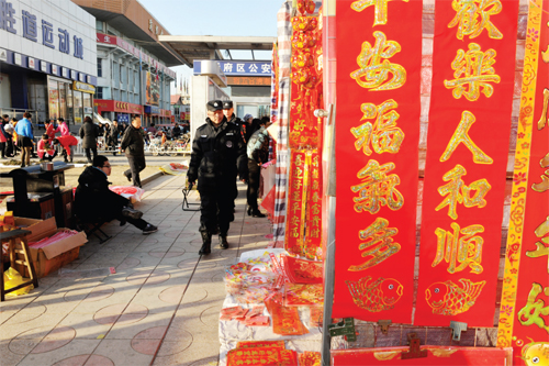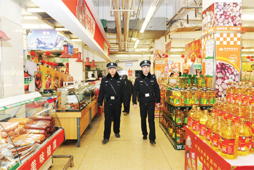 對商場、超市等人群密集場所進(jìn)行重點防控 本報訊根據(jù)公安部和省公安廳的統(tǒng)一安排部署,為確保春節(jié)期間社會治安平穩(wěn)有序,為廣大人民群眾歡度春節(jié)創(chuàng)造良好的社會治安環(huán)境,市公安局高度重視,科學(xué)部署,合理安排,按照以面保點、整體防控的思路,重點防控、源頭穩(wěn)控的原則,全警動員、全力以赴,扎實推進(jìn)安保工作的有序開展。在春節(jié)期間,未發(fā)生影響嚴(yán)重的刑事案件和治安案件,全市社會治安大局持續(xù)穩(wěn)定。 為確保春節(jié)期間我市社會治安穩(wěn)定,市公安機(jī)關(guān)全力加強(qiáng)社會面的管控工作。全面推行全時流動警務(wù)、“警車亮燈”、公安與武警武裝聯(lián)勤等巡防模式,科學(xué)調(diào)整警力部署,最大限度屯警街面,增強(qiáng)對重點路段、時段的巡邏頻次和密度,加大便衣巡防力量的投入,有效地擠壓了街面違法犯罪活動空間;市公安局巡特警支隊開展了春節(jié)期間武裝巡邏防控工作,加大對社會面的巡邏力度,提高對城區(qū)主要街道、案件高發(fā)路段、居民區(qū)、交通樞紐、繁華商業(yè)區(qū)、金融網(wǎng)點等易發(fā)案地區(qū)的巡邏力度,及時消除各類影響穩(wěn)定的苗頭。治安部門加強(qiáng)了對轄區(qū)流動人口和中小旅店、出租房屋、洗浴場所、網(wǎng)吧等重點部位的清查整治,堅決消除各類隱患,嚴(yán)厲打擊“黃賭毒”等違法犯罪活動,進(jìn)一步凈化社會風(fēng)氣,努力營造良好的社會治安環(huán)境。