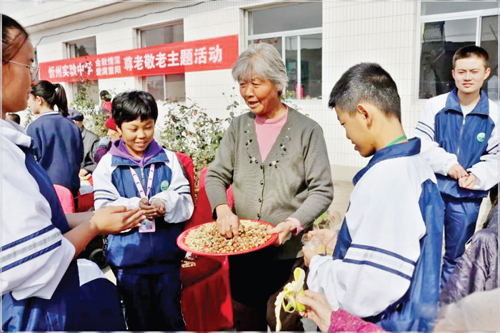 本報訊 為弘揚中華優(yōu)秀傳統(tǒng)文化,倡導(dǎo)尊老、敬老、愛老、助老的傳統(tǒng)美德,引導(dǎo)師生樹立“尊老、敬老、愛老、助老”的良好風(fēng)尚,近期以來,忻州實驗中學(xué)校開展了“金秋情深愛滿重陽”尊老敬老系列主題活動。