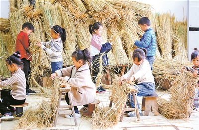 近日,江蘇如皋經(jīng)濟(jì)技術(shù)開發(fā)區(qū)實驗幼兒園的小朋友在學(xué)習(xí)編草簾。大雪節(jié)氣剛過,該園開展知民俗,弘揚(yáng)傳統(tǒng)文化活動,教師帶領(lǐng)小朋友走進(jìn)田野,學(xué)習(xí)用秸稈編織草繩、草簾,用于包裹過冬果樹。
