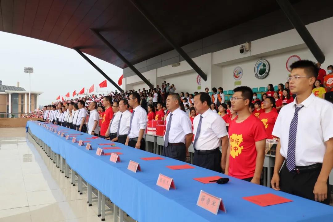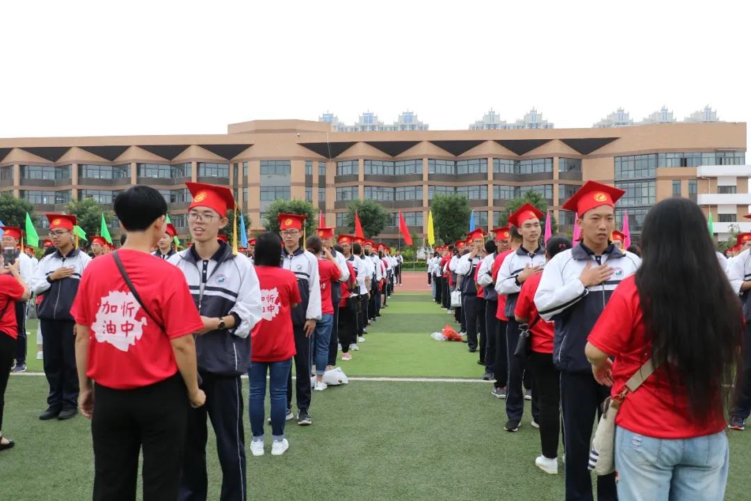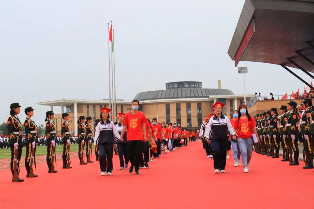 “少年智則國智,少年富則國富;少年強則國強,少年獨立則國獨立……”激昂奮進(jìn)的聲音在北校區(qū)的操場上空回響,在全體高三學(xué)生《少年中國說》激情澎湃的誦讀聲中,本次大會正式開始。莊嚴(yán)的升旗儀式后,學(xué)生代表、教師代表和家長代表依次獻(xiàn)詞:好友同窗與共的奮斗時光,老師日復(fù)一日的悉心陪伴,父母無私無盡的付出關(guān)愛,在一句句溫情感人的獻(xiàn)詞中歷歷浮現(xiàn),激蕩心靈。