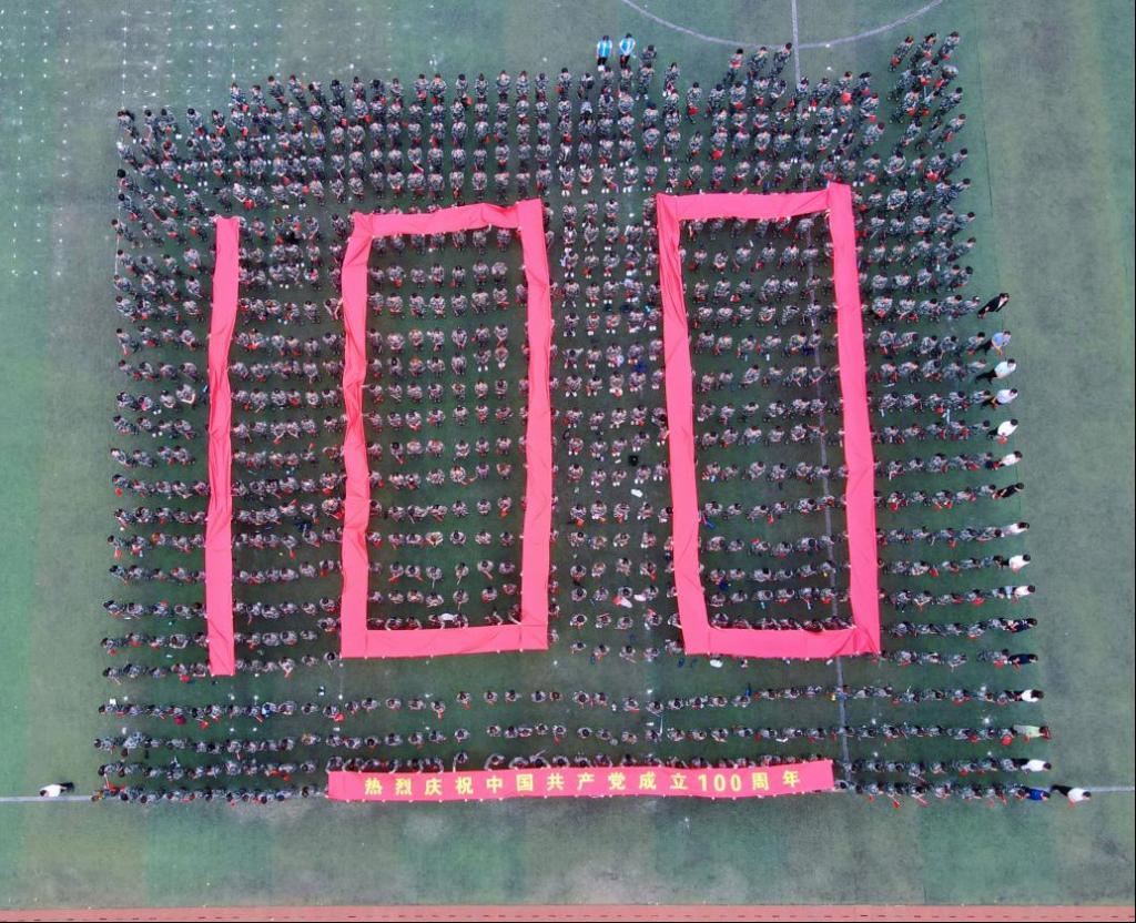 操場中央,由1000名2020級學生組成方隊,呈現(xiàn)“100”字型,向黨致敬。活動全程莊嚴肅穆,又不失青春的朝氣蓬勃和奮進的斗志昂揚,顯現(xiàn)出師生對中國共產(chǎn)黨百年華誕的崇敬與祝福。