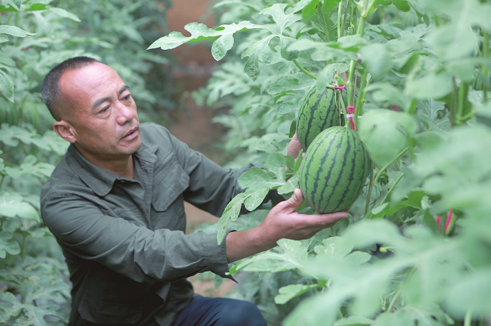 從西紅柿、香瓜到西瓜,合作社基地在周邊積累了穩(wěn)定客源,形成“采摘經(jīng)濟(jì)”與零售批發(fā)雙渠道銷售模式。定襄縣農(nóng)業(yè)技術(shù)服務(wù)中心賈明山介紹,近年來,定襄縣依托晝夜溫差大、光照充足的氣候優(yōu)勢,通過土地流轉(zhuǎn)整合資源,推廣“合作社+基地+農(nóng)戶”經(jīng)營模式。為了引導(dǎo)農(nóng)民發(fā)展設(shè)施農(nóng)業(yè),解決村中富余勞動力,縣農(nóng)業(yè)農(nóng)村局去年投入60余萬元,對全縣30余座老舊大棚進(jìn)行了改造。僅邢俊成的合作社就吸納了周邊20余戶村民就業(yè),從整地、育苗、授粉到采摘,每個環(huán)節(jié)都成了當(dāng)?shù)剞r(nóng)戶的“增收點(diǎn)”。