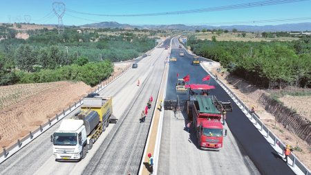 最近,國道108線改建工程(忻州段)激戰(zhàn)正酣,平地機、裝載機、瀝青攤鋪機等設備馬力全開,路面水穩(wěn)層攤鋪、滑膜機工藝澆筑中央護欄等工序正在緊鑼密鼓地進行。工人們忙碌穿梭,安全員逐項排查隱患,技術人員同步檢測施工質(zhì)量,現(xiàn)場一片繁忙有序。掀起大干快干的新高潮,已進場施工作業(yè)人員300余人,主要機械設備進場100臺套,道路項目水穩(wěn)層鋪設完成總量的80%,下面層瀝青鋪設完成總量的60%、上面層瀝青鋪設完成總量的25%,中央分隔帶護欄累計完成59.41%。涌動的數(shù)字可以折射火熱的工作場面。國道108線忻州段改建工程項目是“十四五”期間全省規(guī)模最大、里程最長、投資最多的國省干線新改建工程。今年以來,山西路橋集團忻州國道項目建設管理有限公司提前吹響決戰(zhàn)的沖鋒號,圍繞項目建設爭分奪秒搶進度。項目部正采取“白+黑”“五+二”的工作模式,組織工人對路面、路基、交安、機電、綠化采取交叉作業(yè)等方式施工,在確保質(zhì)量安全的前提下,各項工作正按照預期目標穩(wěn)步推進。