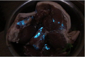 據(jù)媒體2010年12月6日報道,湖南長沙市個別市場銷售的豬肉在夜間居然能發(fā)出幽幽的藍光,這一現(xiàn)象引起廣大消費者的恐慌。湖南省獸藥飼料監(jiān)察所所長鄧云波介紹,豬肉之所以夜間發(fā)光是生豬屠宰后被發(fā)光菌所污染導(dǎo)致。