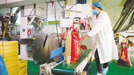 位于蔡家會(huì)鎮(zhèn)的興縣山花爛漫農(nóng)業(yè)綜合開發(fā)有限公司,日精加工50噸谷子成套設(shè)備生產(chǎn)流水線上,經(jīng)過初篩、精選、加工、包裝后的袋裝小米經(jīng)過傳輸帶被送往庫房,等待裝車發(fā)貨。“我們的產(chǎn)品涵蓋有機(jī)小米、綠豆、莜面、豇豆面、亞麻籽油等,年加工雜糧、油料可達(dá)4萬多噸?!惫径麻L賀虎平介紹,自2005年“山花爛漫”商標(biāo)注冊(cè)以來,已與興縣50多個(gè)自然村,916戶農(nóng)戶,簽訂訂單農(nóng)業(yè)近3萬畝,其中脫貧戶430多戶,戶均收入達(dá)到1.5萬余元/年。