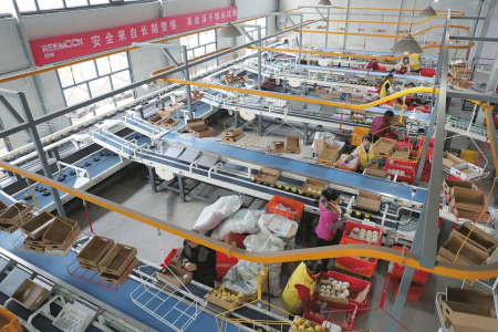 11月14日,原平市同川鎮(zhèn)劉河底村同川梨果倉儲配送中心自動化選果車間內,工人們正在篩選、包裝產品。近年來,該市發(fā)揮“一村一品”地理優(yōu)勢,深耕梨果產業(yè)鏈,建設與現代農業(yè)產業(yè)發(fā)展相適應的農產品冷鏈物流體系,助力當地農產品對外銷售。