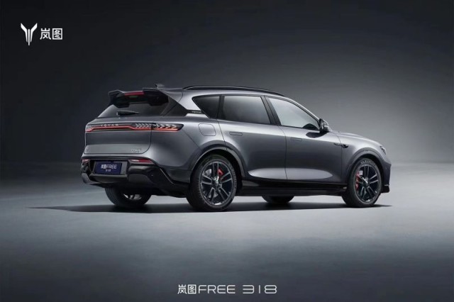 嵐圖FREE 318的車側(cè)與車尾也進一步“黑化”,運動化輪圈內(nèi)還采用了紅色制動卡鉗,此外,新車尾部激進的尾翼也為整體視覺效果增色不少,給人很強的視覺質(zhì)感。