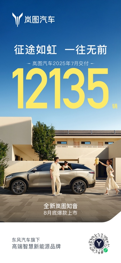 嵐圖汽車CEO盧放表示:“在用戶的支持下,嵐圖汽車7月延續(xù)高質(zhì)量發(fā)展態(tài)勢,嵐圖夢想家穩(wěn)居銷量冠軍,全新上市的嵐圖FREE+也快速獲得市場認(rèn)可,這進一步堅定了我們的發(fā)展信心。8月,我們將更進一步提速生產(chǎn)交付、升級服務(wù)體驗、加強用戶交流,并推出新產(chǎn)品——全新嵐圖知音,為用戶帶來更多優(yōu)質(zhì)選擇,為品牌發(fā)展注入更強動能。”