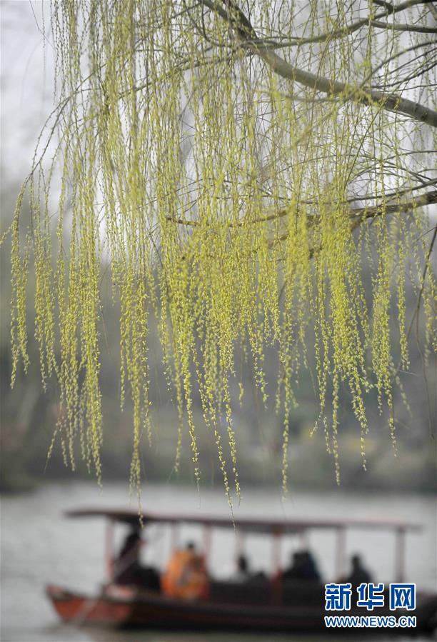 3月6日,游客在揚(yáng)州瘦西湖賞花。隨著氣溫升高,江蘇揚(yáng)州市瘦西湖景區(qū)楊柳吐綠,繁花似錦,吸引許多中外游客前來(lái)踏春賞花。 新華社發(fā)(孟德龍 攝)