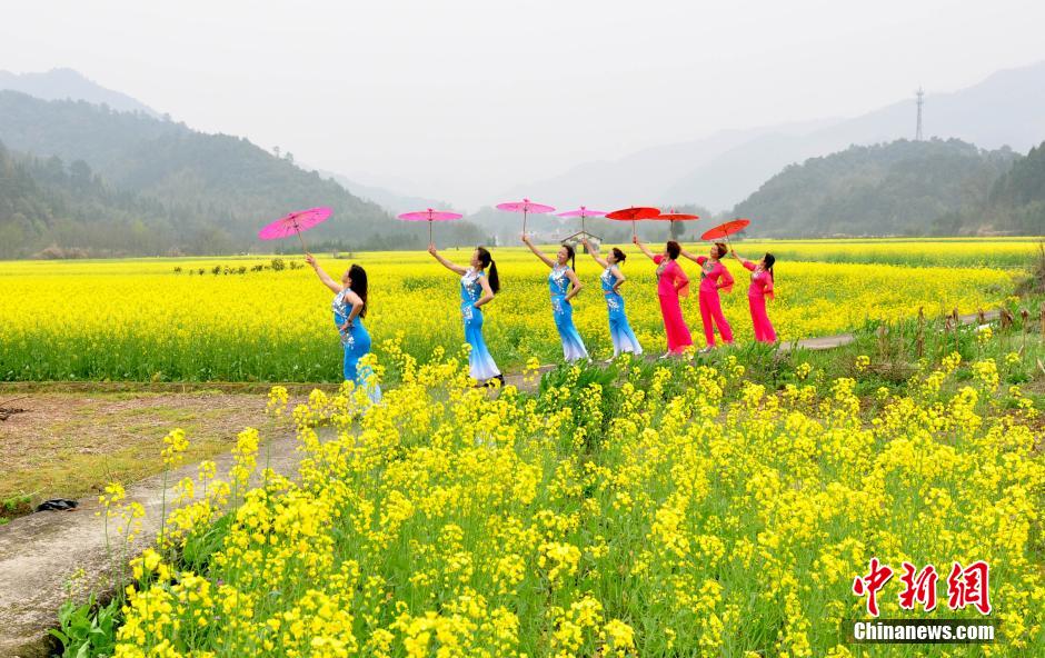 3月20日,江西省德興市??阪?zhèn)杜村婦女在田間花海“走秀”。當日,江西德興市海口鎮(zhèn)杜村一批家庭婦女以千畝油菜花海為舞臺,展示自己的才藝形象,希望宣傳家鄉(xiāng)的自然生態(tài)與人文歷史,擴大旅游知名度和影響力。德興市??阪?zhèn)杜村交通便利,自然風光優(yōu)美,村內(nèi)有歷史古跡和名木古樹。 胡敦煌 攝