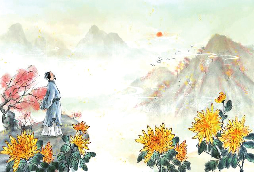 東晉詩(shī)人陶淵明在《九日閑居》一詩(shī)序文中曰:“余閑居,愛(ài)重九之名。秋菊盈園,而持醪靡由,空服九華,寄懷于言?!睂O思邈的《千金方月令》也稱:“重陽(yáng)日,必以看酒登高遠(yuǎn)眺,為時(shí)宴之游賞,以暢秋志。酒必采茱萸、菊以泛之,即醉而歸?!碧拼蹙S的詩(shī)句膾炙人口:“遙知兄弟登高處,遍插茱萸少一人。”杜牧《九日齊山登高》詩(shī)云:“塵世難逢開(kāi)口笑,菊花須插滿頭歸?!鼻宕本┲仃?yáng)節(jié)的習(xí)俗是把菊花枝葉貼在門窗上,“解除兇穢,以招吉祥”。