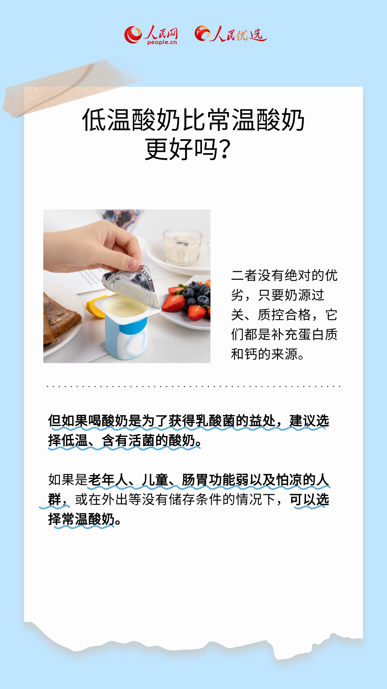 酸奶營養(yǎng)又美味,可面對市面上琳瑯滿目的產(chǎn)品,您是否也有這些疑問:酸奶主要分為哪些類型?成年人每日適合飲用多少?在選購時(shí)又該注意哪些方面?不少人,尤其是減肥人士,喜歡用酸奶代餐,但若想吃得健康,科學(xué)挑選與適量飲用必不可少。本期《人民優(yōu)選來了》將為您一一梳理,帶您解鎖酸奶的食用小知識(shí),一起來看看吧!