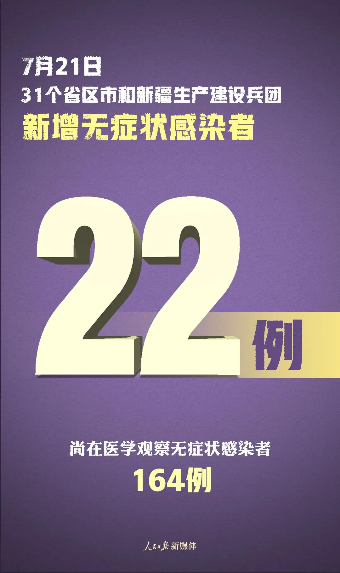 31個(gè)?。ㄗ灾螀^(qū)、直轄市)和新疆生產(chǎn)建設(shè)兵團(tuán)報(bào)告新增無(wú)癥狀感染者22例(境外輸入8例);當(dāng)日無(wú)轉(zhuǎn)為確診病例;當(dāng)日解除醫(yī)學(xué)觀察7例(境外輸入4例);尚在醫(yī)學(xué)觀察無(wú)癥狀感染者164例(境外輸入84例)。