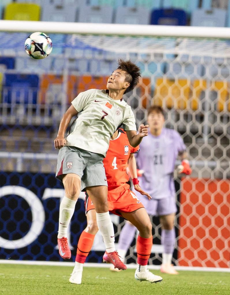 開局第15分鐘,中國隊姚偉一記遠(yuǎn)射幫助球隊1:0獲得領(lǐng)先。但隨后韓國隊逐漸形成高位壓迫,多次在攻防轉(zhuǎn)換間沖擊中國隊后防線。上半場補時階段,韓國隊張瑟琪扳平比分。下半場第67分鐘,姚偉頭球助攻,邵子欽頭球接力破門,中國隊2:1重奪領(lǐng)先優(yōu)勢。整場比賽補時階段最后一分鐘,池笑然一記世界波幫助韓國隊追平比分。