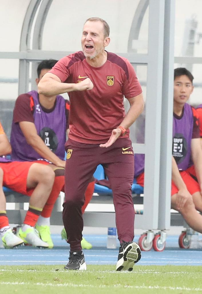 7月15日,中國(guó)隊(duì)代理主教練久爾杰維奇在場(chǎng)邊指揮。新華社記者 姚琪琳 攝