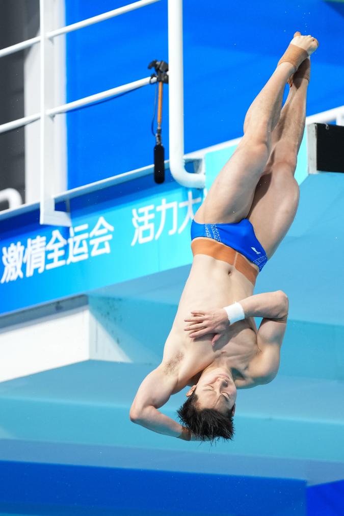 4日晚進(jìn)行的男子1米跳板決賽中,世錦賽“四冠王”王宗源穩(wěn)定發(fā)揮,跳出了492.30的高分,以領(lǐng)先第二名山東隊(duì)臺曉虎46.45分的絕對優(yōu)勢將金牌穩(wěn)穩(wěn)收入囊中?!敖裉煺麍霰荣惔蠹叶挤浅F矗乙渤浞终宫F(xiàn)出了自己的水平,沒想到能跳到這么高的分?jǐn)?shù)?!蓖踝谠凑f,這次選擇1米跳板是“不忘初心”?!拔沂?米跳板出身的,這是我的起點(diǎn),也是對自己的一種激勵?!?/p>