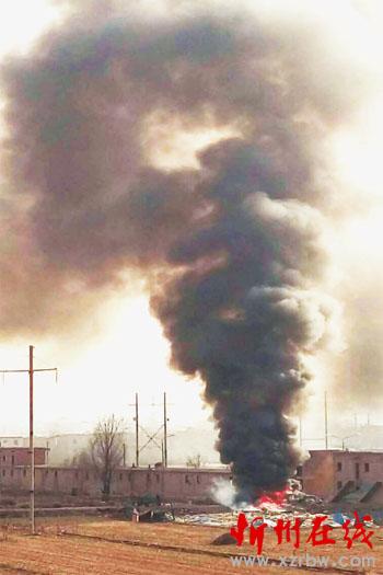忻府區(qū)樊野村村北,路東廢棄的一排小二樓后面,村民焚燒垃圾,黑煙滿天,空氣中彌散著嗆人的氣味,從6日下午三、四點一直燒到晚上。這樣集中焚燒垃圾對周圍環(huán)境造成很大污染,望有關(guān)單位進(jìn)行監(jiān)管。(一網(wǎng)友攝于3月6日晚七點)