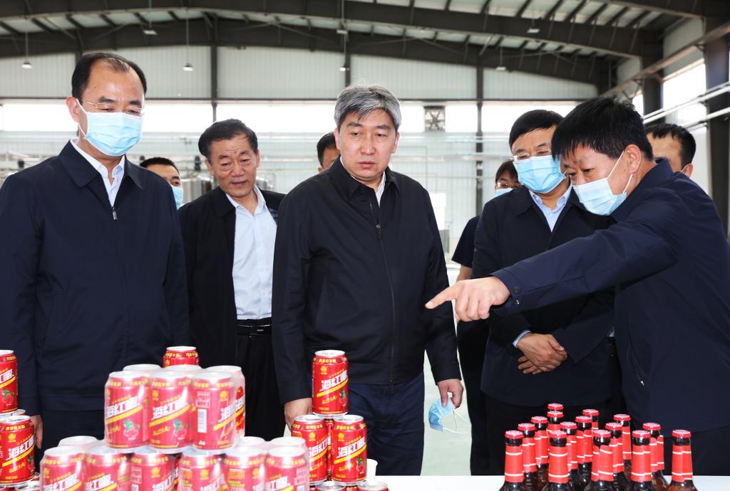 朱曉東在海紅果飲品項(xiàng)目生產(chǎn)線調(diào)研。記者 范濤 攝