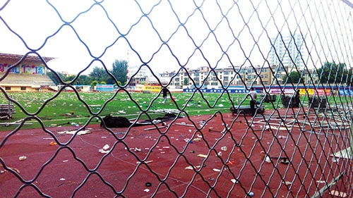 6月18日晚,市體育場(chǎng)在舉辦完一場(chǎng)音樂(lè)盛會(huì)后,現(xiàn)場(chǎng)一片狼藉,垃圾滿地。臟亂的場(chǎng)面給工作人員帶來(lái)很大工作量,希望市民還是要多愛(ài)護(hù)公共場(chǎng)所環(huán)境衛(wèi)生。(網(wǎng)友:藍(lán)天碧水 攝)