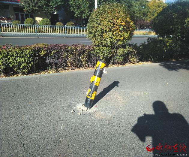 當天,記者隨即趕赴現(xiàn)場,看到了非機動車道傾倒的隔離樁樁身明顯有機動車碰撞的痕跡,樁桿呈45度角傾斜,地面水泥埋樁的部分業(yè)已變形,基本上起不到對機動車及非機動車的警示作用,反而成為一處安全隱患。據(jù)附近市民反映,這一現(xiàn)象存在已有些時日,至今仍未有任何部門過問,不僅影響市民出行,而且有損文明城市的創(chuàng)建。希望市政及有關(guān)部門能夠及時予以更換和維護,扮靚文明城市形象。(張林泉 攝影報道)