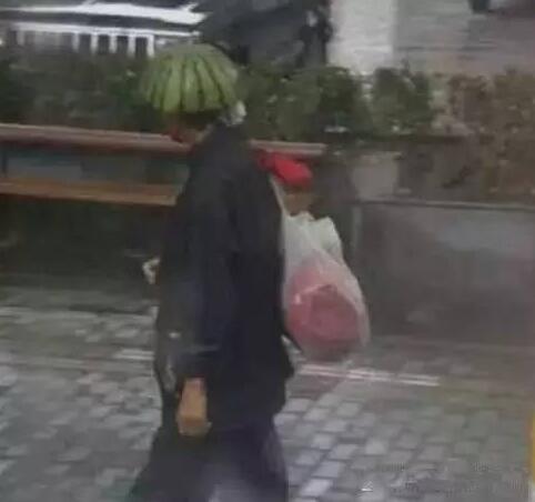 下雨不愁~~人家有傘,咱有瓜皮