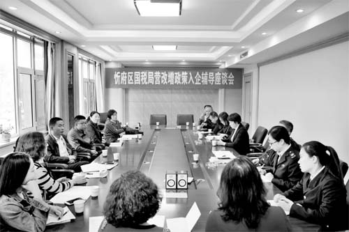 本報(bào)訊 4月19日下午,忻府區(qū)國稅局營改增政策入企輔導(dǎo)座談會(huì)在忻州國力房地產(chǎn)開發(fā)有限公司會(huì)議室召開。區(qū)局黨組書記、局長郭靜出席,政策法規(guī)科科長王繼紅主持會(huì)議,稅源管理科負(fù)責(zé)人和房地產(chǎn)企業(yè)代表一同參加。