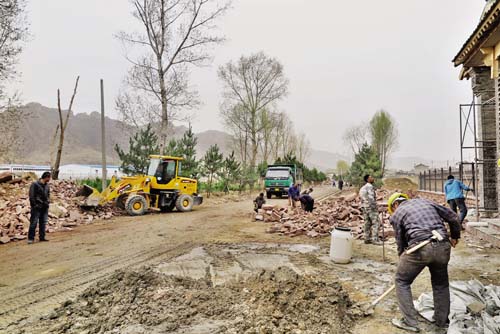 4月19日,記者在岢嵐縣宋家溝鄉(xiāng)宋家溝村看到,該村正組織人員對道路兩旁的殘墻斷壁進行修復(fù),對道路進行綠化、亮化、硬化建設(shè),施工現(xiàn)場人頭攢動、機聲隆隆,一派熱火朝天的景象。