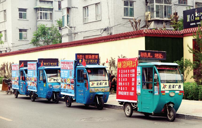 本報(bào)訊 近日,在我市城區(qū)一些主干道上,出現(xiàn)了經(jīng)過(guò)改裝噴有廣告字樣的三輪車。這些車輛經(jīng)常停在非機(jī)動(dòng)車道上做宣傳,不僅影響交通,還存在安全隱患。