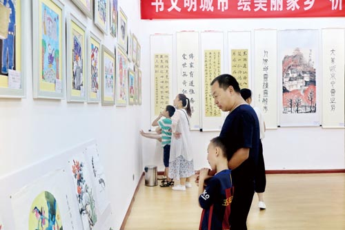 市教育局、市關(guān)心下一代工作委員會(huì)、五臺(tái)山書畫院、五臺(tái)山文化研究院、市書法家協(xié)會(huì)、市美術(shù)家協(xié)會(huì)、市硬筆書法協(xié)會(huì)、市廣播電影電視協(xié)會(huì)、黃河新聞網(wǎng)等主辦單位負(fù)責(zé)人,以及我市書畫家、學(xué)校、書畫培訓(xùn)機(jī)構(gòu)代表、參賽學(xué)生代表以及聞?dòng)嵱^展的市民200余人參加了活動(dòng)。300余幅充滿童趣、技法嫻熟,從不同側(cè)面抒發(fā)對(duì)祖國和家鄉(xiāng)美麗風(fēng)景的贊美,歌頌秀容大地日新月異變化的書畫作品驚艷了到場(chǎng)的所有人。