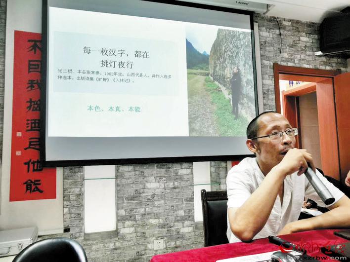 張二棍的詩歌極具特色,具有一種樸素的高貴和悲憫的神性,善于將那些被人熟視無睹的,平常、平淡、平凡的物事歌詠成詩,而且給人“縱身一躍”或者“峰回路轉(zhuǎn)”的感覺,可以說有“點(diǎn)石成金”的創(chuàng)作力,是近年來我國詩歌創(chuàng)作的標(biāo)桿性人物。這次特別邀請(qǐng)張二棍進(jìn)行詩歌講座,可以說是忻州詩歌界的一件大事。