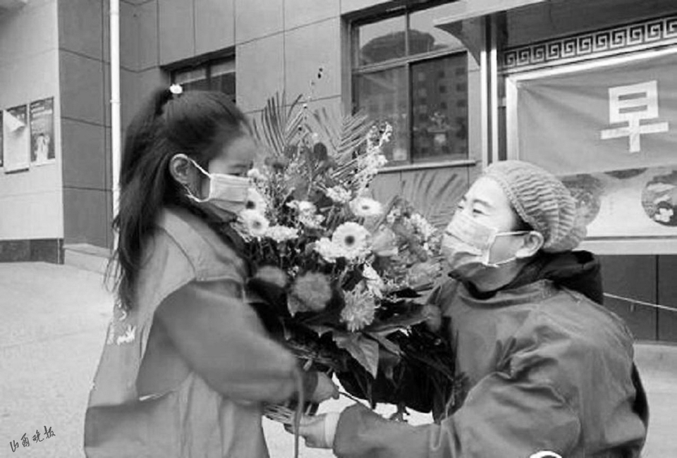 帶著6歲女兒曹夢惠上陣的曹東平和帶著兒子一起配送的長治正能量公益協(xié)會會長羅春江格外惹眼。“上陣父子兵”,“雖然不在前線,但希望通過這樣一種方式助力疫情防控阻擊戰(zhàn)早日打贏?!绷_春江說。