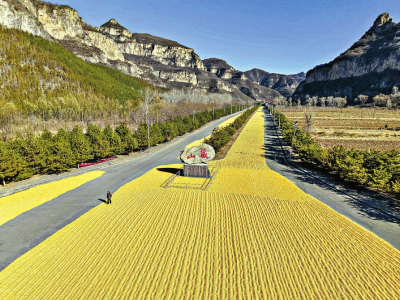 山西晚報·山河+訊(記者 溫麗芳)近日,在陽泉盂縣藏山景區(qū),一條由金黃玉米鋪就的“黃金大道”,在青山、藍(lán)天的映襯下,構(gòu)成一道別樣的冬日風(fēng)景。據(jù)了解,藏山景區(qū)主動騰退千米道路,為周邊農(nóng)戶提供免費晾曬場地,讓豐收的玉米與巍峨的太行山水相映成畫,繪就了一幅農(nóng)旅共融的生動圖景。 受今年秋季連陰雨天氣影響,我省局地的秋糧存在潮濕、晾曬場地不足等情況。為解決農(nóng)戶燃眉之急,近日,陽泉盂縣藏山風(fēng)景區(qū)趁著冬季旅游淡季,在不影響正常游覽的情況下,將部分停車場、游覽大道等騰出來,供十里八鄉(xiāng)的農(nóng)戶晾曬秋糧。 藏山景區(qū)副總經(jīng)理田慧告訴山西晚報·山河+記者,景區(qū)結(jié)合冬季客流特點,在不影響核心游覽區(qū)域的前提下,專門規(guī)劃了這條從景區(qū)入口延伸至停車場的“助農(nóng)曬場”,總面積超2萬平方米?!拔覀儼才帕藢H酥凳?,既引導(dǎo)游客安全通行,又幫農(nóng)戶照看晾曬的糧食,讓大家收得安心、曬得放心。” 從空中俯瞰,景區(qū)標(biāo)志性的刻有“藏山”字樣的巨石,被連片的玉米“花?!杯h(huán)繞,綿延千米的道路上,玉米粒被村民們精心鋪成整齊的波紋狀,宛如一條流淌的金色長河?!敖衲昃皡^(qū)把這么寬的路讓給我們晾曬糧食,真的解決了我們一大難題!”正在翻曬玉米的村民李師傅說道。 這一暖心舉措也贏得了游客的廣泛好評。來自太原的游客張女士特意在這里拍照留念,“第一次見到景區(qū)給農(nóng)民讓道曬糧,既能欣賞藏山的壯美風(fēng)光,又能感受到濃濃的鄉(xiāng)土溫情,這樣的景區(qū)太溫暖了!”目前,這條“黃金大道”已成為藏山景區(qū)的新晉打卡點,不少游客專程前來,在金黃的玉米地旁留影,記錄下這份獨特的豐收記憶。 藏山景區(qū)的“讓路曬糧”行動,不僅解決了農(nóng)戶的實際困難,更成為文旅企業(yè)踐行社會責(zé)任的生動實踐。據(jù)了解,景區(qū)還將根據(jù)實際情況延長曬場使用時間,并計劃在明年秋收季擴(kuò)大晾曬區(qū)域,讓這條“黃金大道”成為連接景區(qū)與鄉(xiāng)村的暖心紐帶。 (責(zé)任編輯:梁艷) |