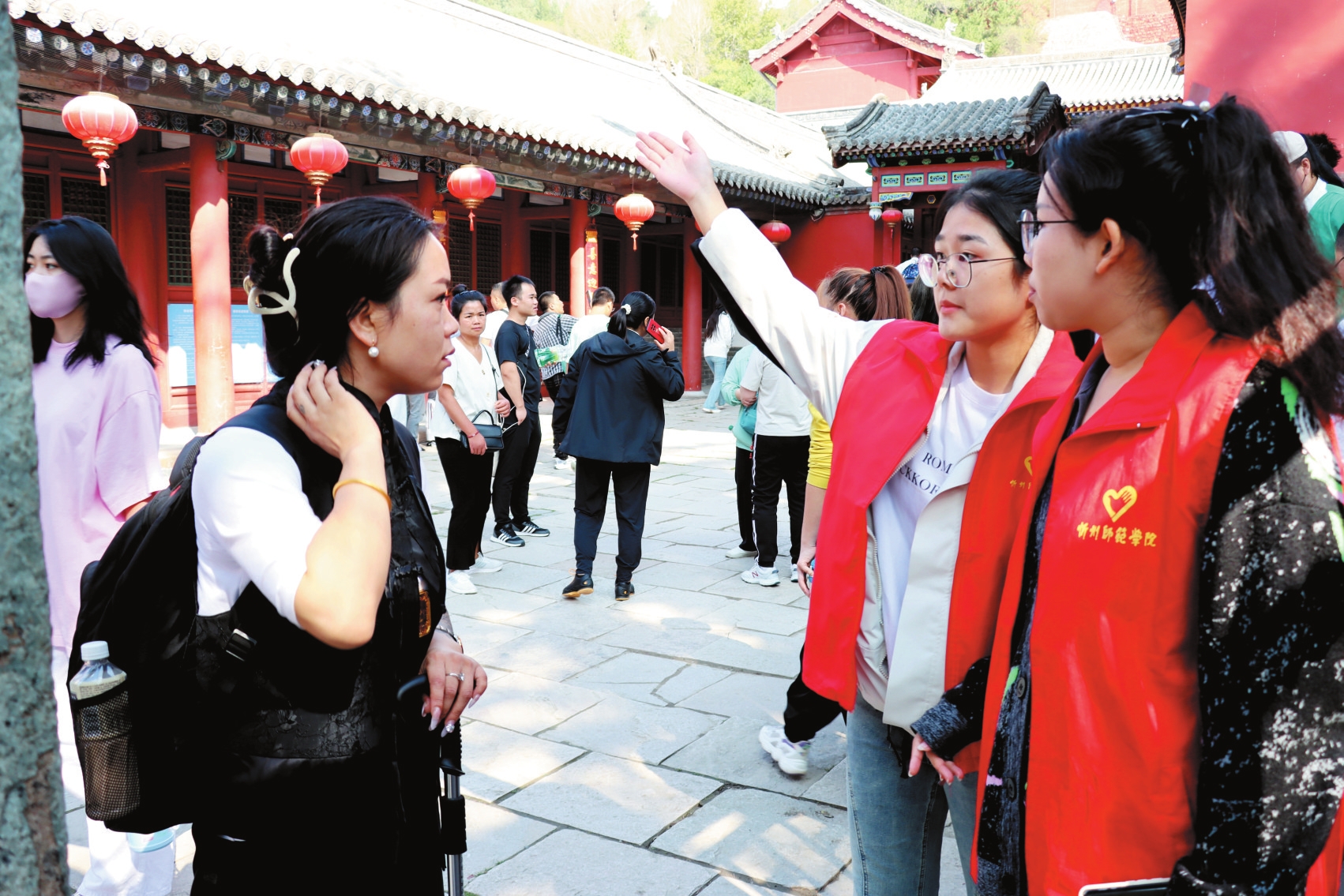 五臺山風(fēng)景名勝區(qū)志愿者積極開展文明實(shí)踐活動,為游客提供全方位服務(wù)。本報(bào)通訊員攝