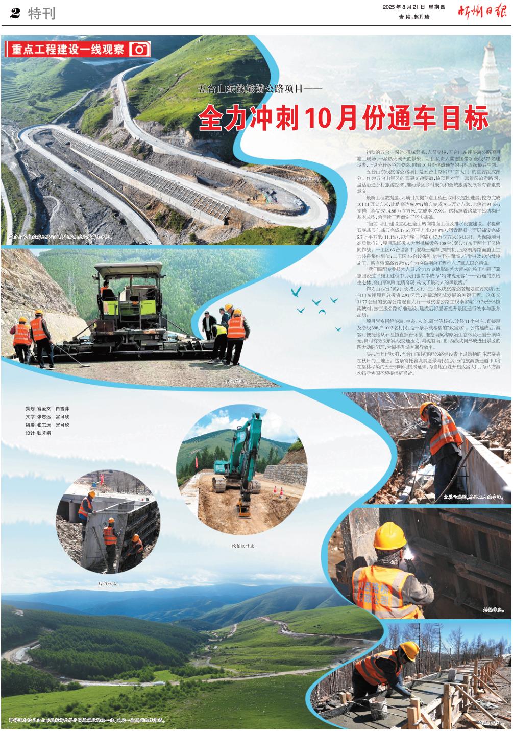 決戰(zhàn)號(hào)角已吹響,五臺(tái)山東線旅游公路建設(shè)者正以昂揚(yáng)的斗志奮戰(zhàn)在秋日的工地上。這條寄托著發(fā)展愿景與民生期盼的旅游新通道,即將在層林盡染的五臺(tái)群峰間鋪展延伸,為當(dāng)?shù)匕傩臻_(kāi)啟致富大門,為八方游客暢游佛國(guó)圣境提供新通途。