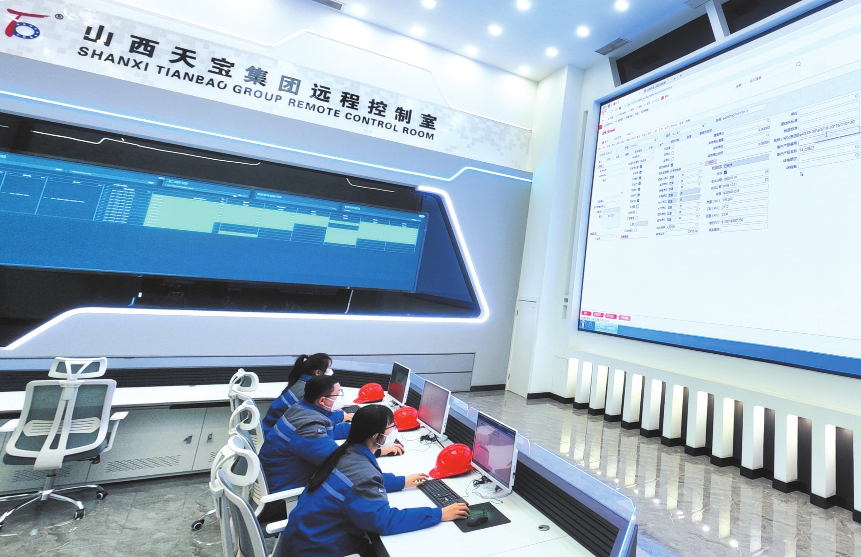 山西天寶集團(tuán)工作人員正在查看訂單生產(chǎn)進(jìn)度,了解設(shè)備運(yùn)行情況。本報記者 張存良攝