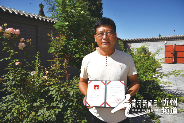魏文福手捧省級谷子產(chǎn)業(yè)高級技能職業(yè)農(nóng)民資格證