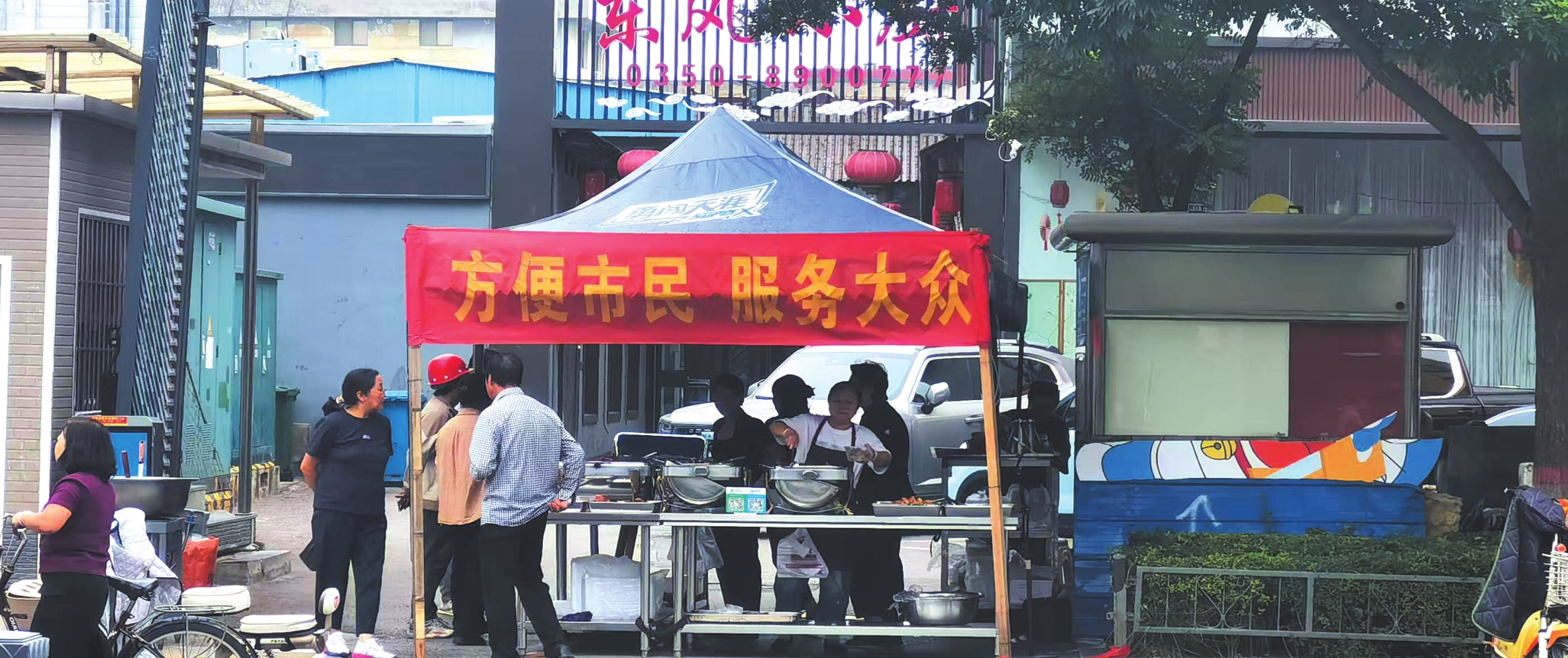 進(jìn)入9月,秋風(fēng)送爽。在我市城區(qū)新建路、云中路等主要街道,不少酒店門前擺出了一輛輛便民餐車和外賣攤位。鹵雞、燉豬蹄、燴菜、過油肉、現(xiàn)拌涼菜……一道道色澤誘人、香味撲鼻的菜品剛剛出鍋,就被等候的市民選購一空。