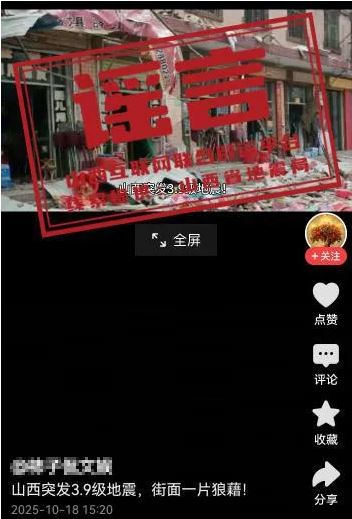 10月18日,有網(wǎng)民發(fā)布“山西突發(fā)3.9級地震,街面一片狼藉!”相關信息,引發(fā)網(wǎng)民關注,經(jīng)向相關部門確認,該信息與事實不符。