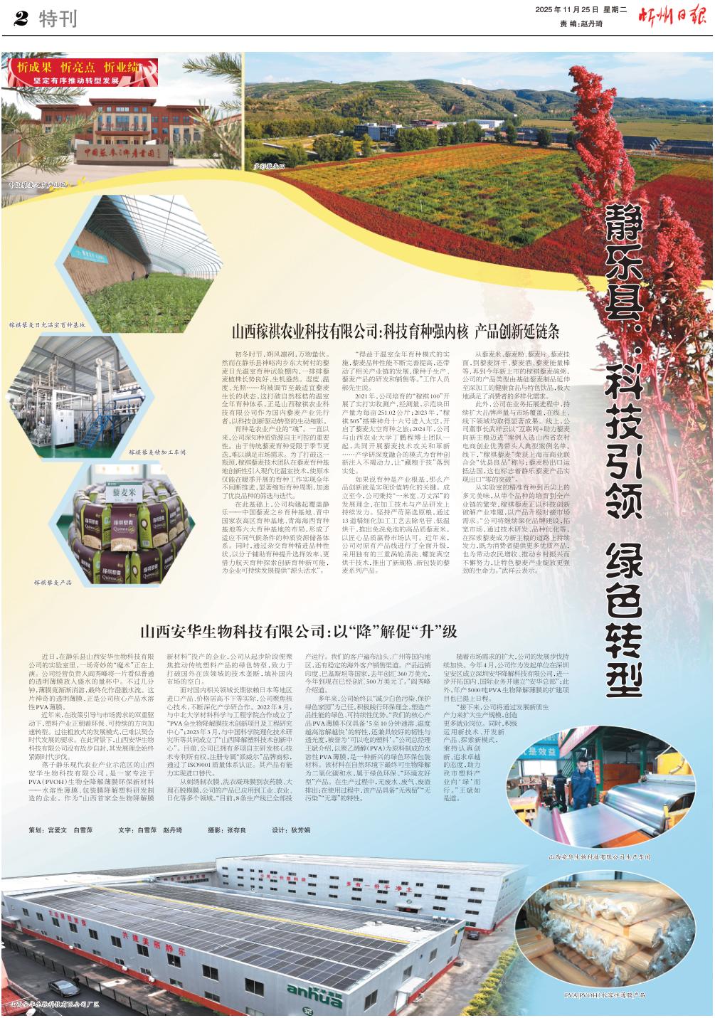 落子靜樂現(xiàn)代農(nóng)業(yè)產(chǎn)業(yè)示范區(qū)的山西安華生物科技有限公司,是一家專注于PVA(PVOH)生物全降解薄膜環(huán)保新材料——水溶性薄膜、包裝膜降解塑料研發(fā)制造的企業(yè)。作為“山西首家全生物降解膜新材料”投產(chǎn)的企業(yè),公司從起步階段便聚焦推動傳統(tǒng)塑料產(chǎn)品的綠色轉(zhuǎn)型,致力于打破國外在該領(lǐng)域的技術(shù)壟斷,填補(bǔ)國內(nèi)市場的空白。